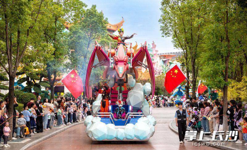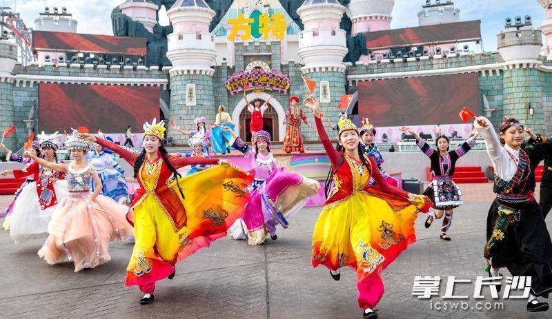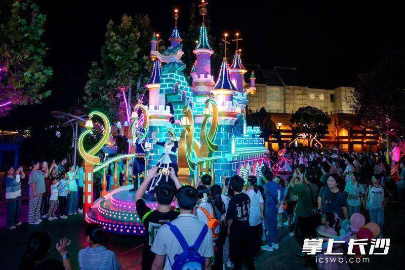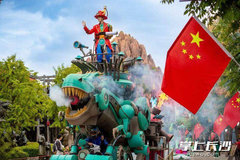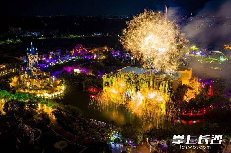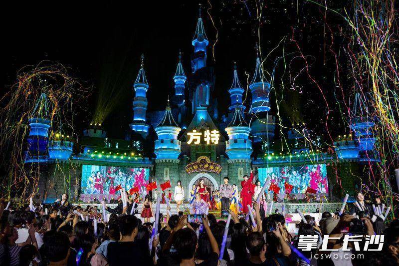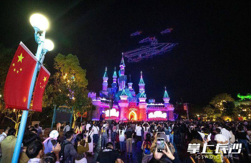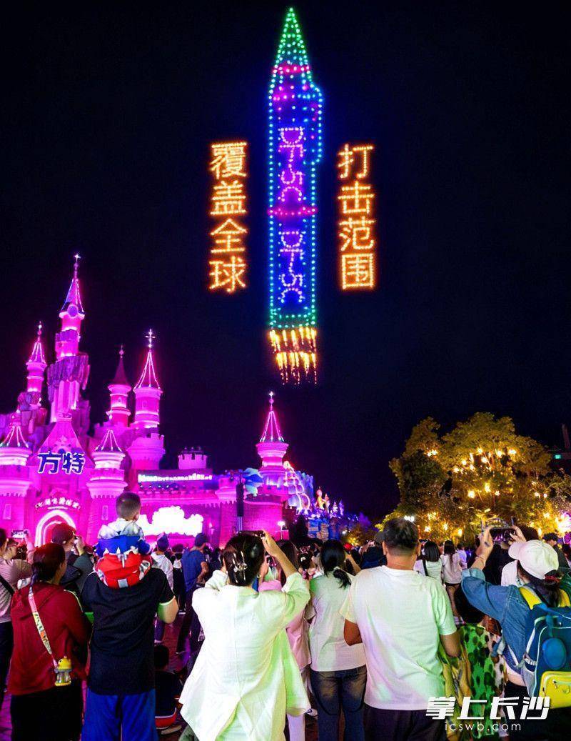 长沙晚报掌上长沙10月5日讯(全媒体记者 贺文兵 摄影报道)国庆中秋双节叠加,株洲方特推出“盛世狂欢节”主题活动。今晚,株洲方特千架无人机在夜空中演绎出“东风-5C”“航母”等国之重器的雄姿,带领游客重温祖国辉煌成就。