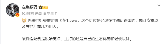 【CNMO科技消息】1月22日,CNMO注意到,有消息称,苹果旗下首款折叠屏(预计名称为iPhone Fold)的售价将卡在1.5万元上下。而此前外界曾传闻苹果折叠屏售价将达2500美元,折合人民币约1.7万元。